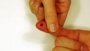 Bloddropparna är för små. Vid kontakt med objektsglaset vidrördes inte fingertopparna. |