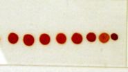 Bloddropparna är för tjocka och utsuddade. Vid kontakten med objektsglaset vidrördes inte fingertopparna. |